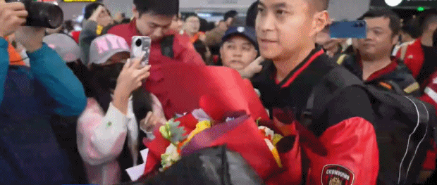 11月09日讯 昨日中甲收官战,重庆铜梁龙客场2-0战胜上海嘉定汇龙,以联赛第二冲超成功。今日重庆铜梁龙荣耀返渝,机场球迷热情洋溢。